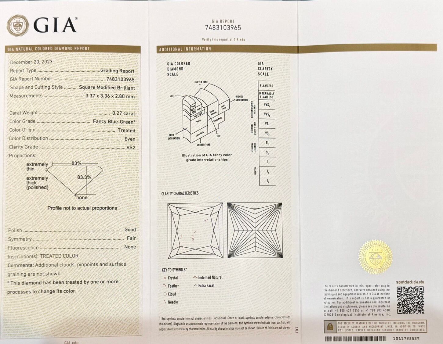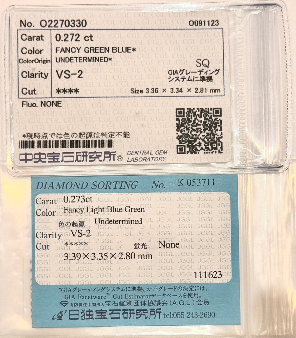カラー:FANCY BLUE GREEN (Treated GIA)